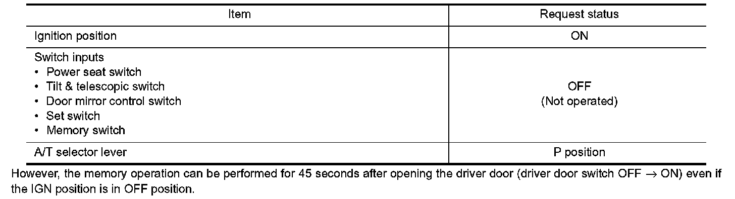 Satisfy all of the following items. The memory function is not performed if these items are not satisfied.