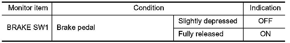 3. Check "BRAKE SW1" indication under the following conditions.