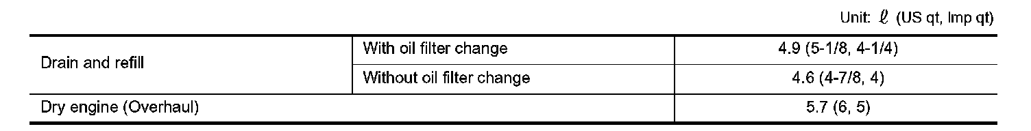 ENGINE OIL CAPACITY (APPROXIMATELY)