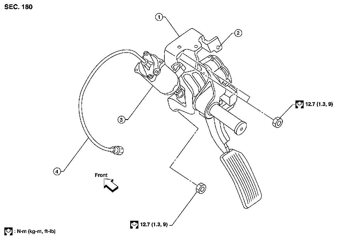- Before removal and installation the accelerator and brake pedals must be in the frontmost position.