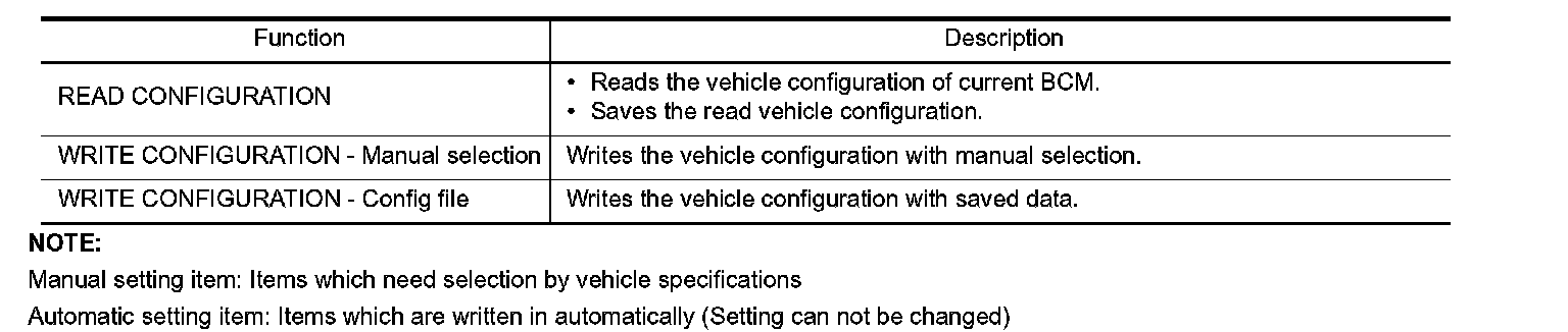 CONFIGURATION (BCM) CONFIGURATION (BCM) : Description