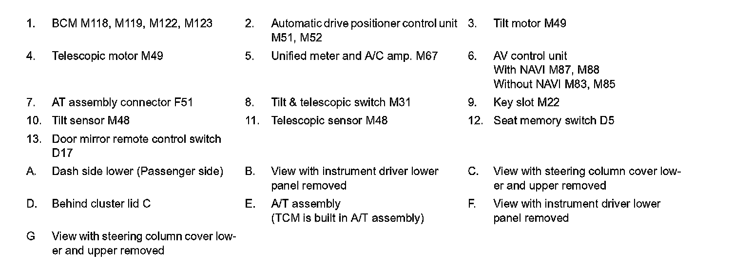 AUTOMATIC DRIVE POSITIONER SYSTEM : Component Parts Location