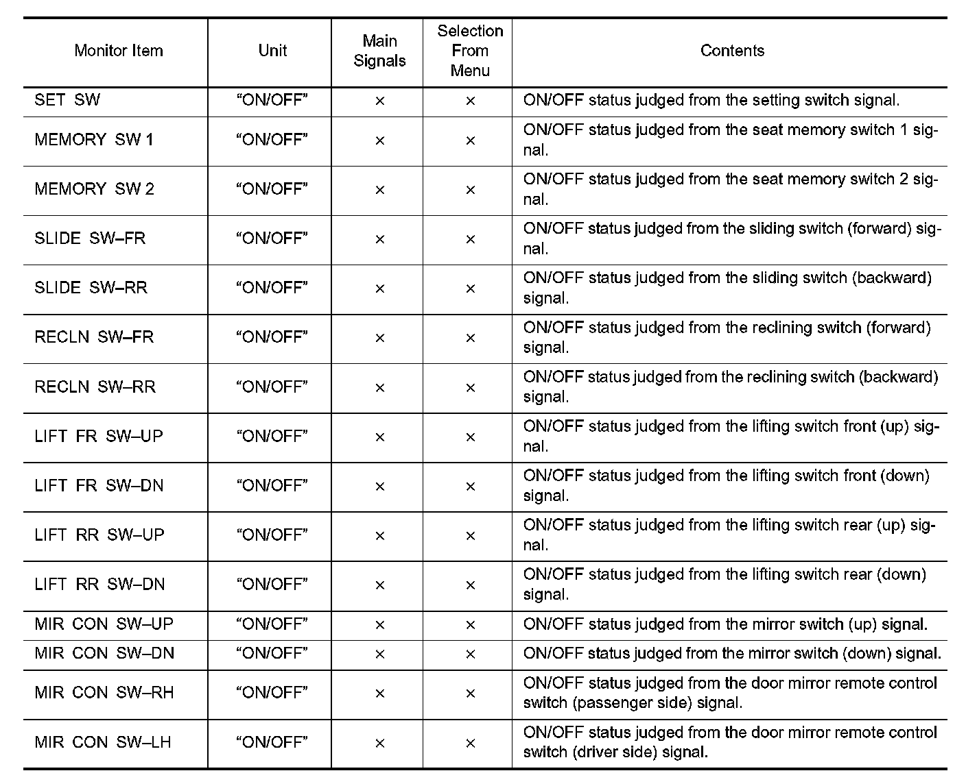 DIAGNOSIS SYSTEM (DRIVER SEAT C/U)