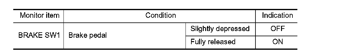 3. Check "BRAKE SW1" indication under the following conditions.