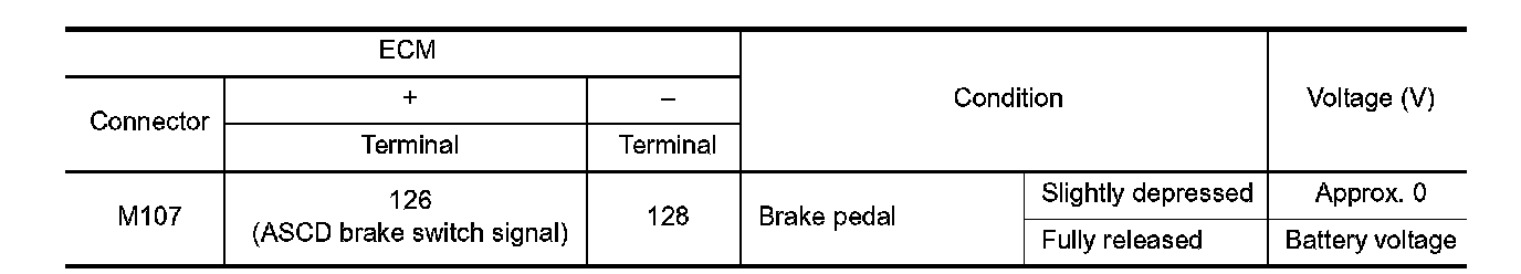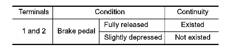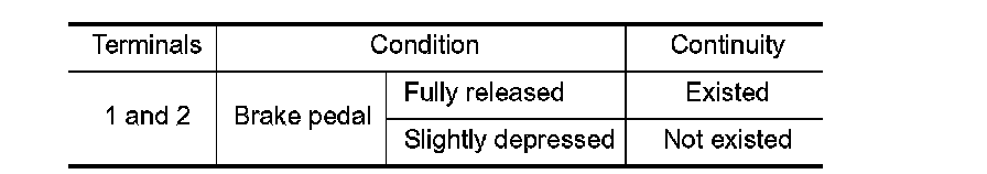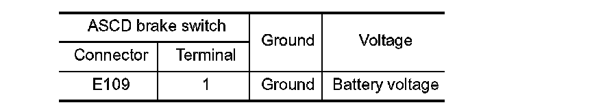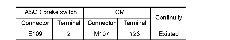 2. Check the continuity between ASCD brake switch terminals under the following conditions.