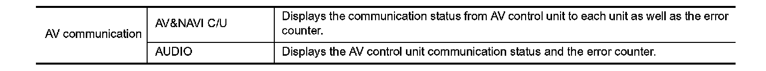 When "AV communication" of "CAN DIAG Support Monitor" is selected, the following function will be performed.