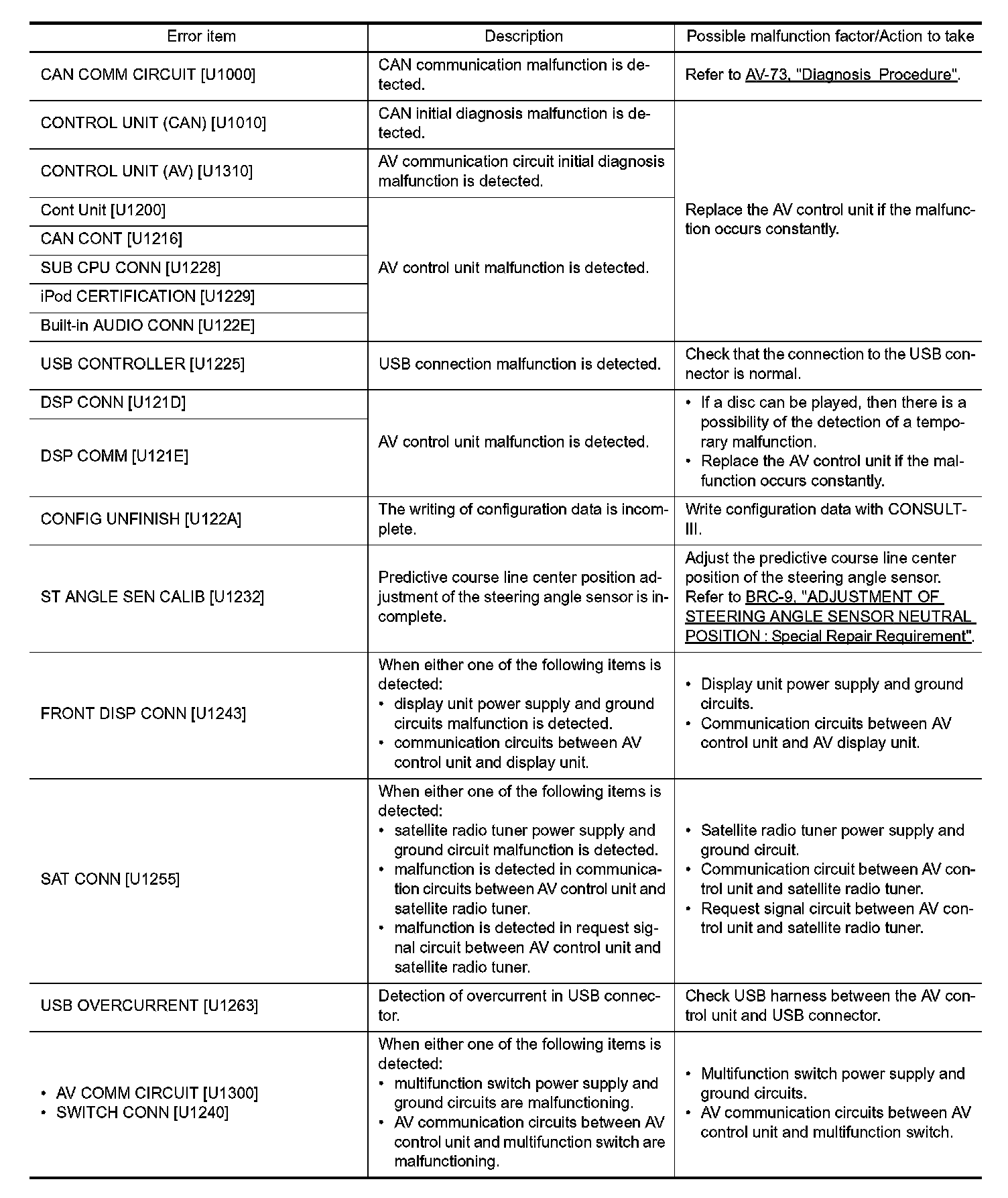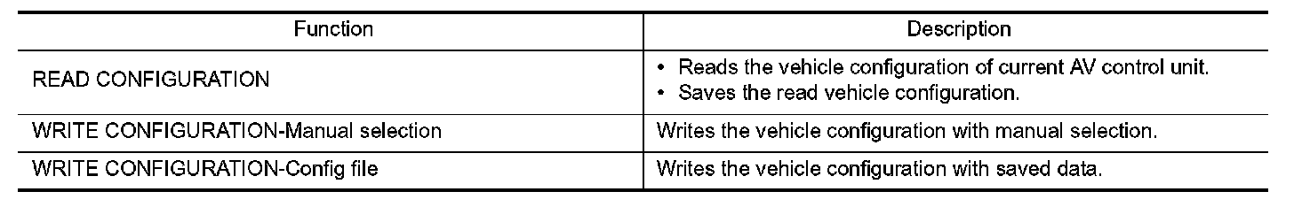 CONSULT-III performs the following functions via the communication with the AV control unit.