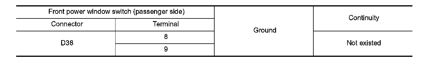 4. Check continuity between front power window switch (passenger side) connector and ground.