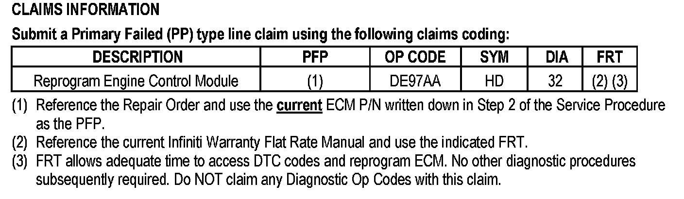 ^ Diagnosis and repairs beyond ECM reprogramming are not covered by this bulletin.