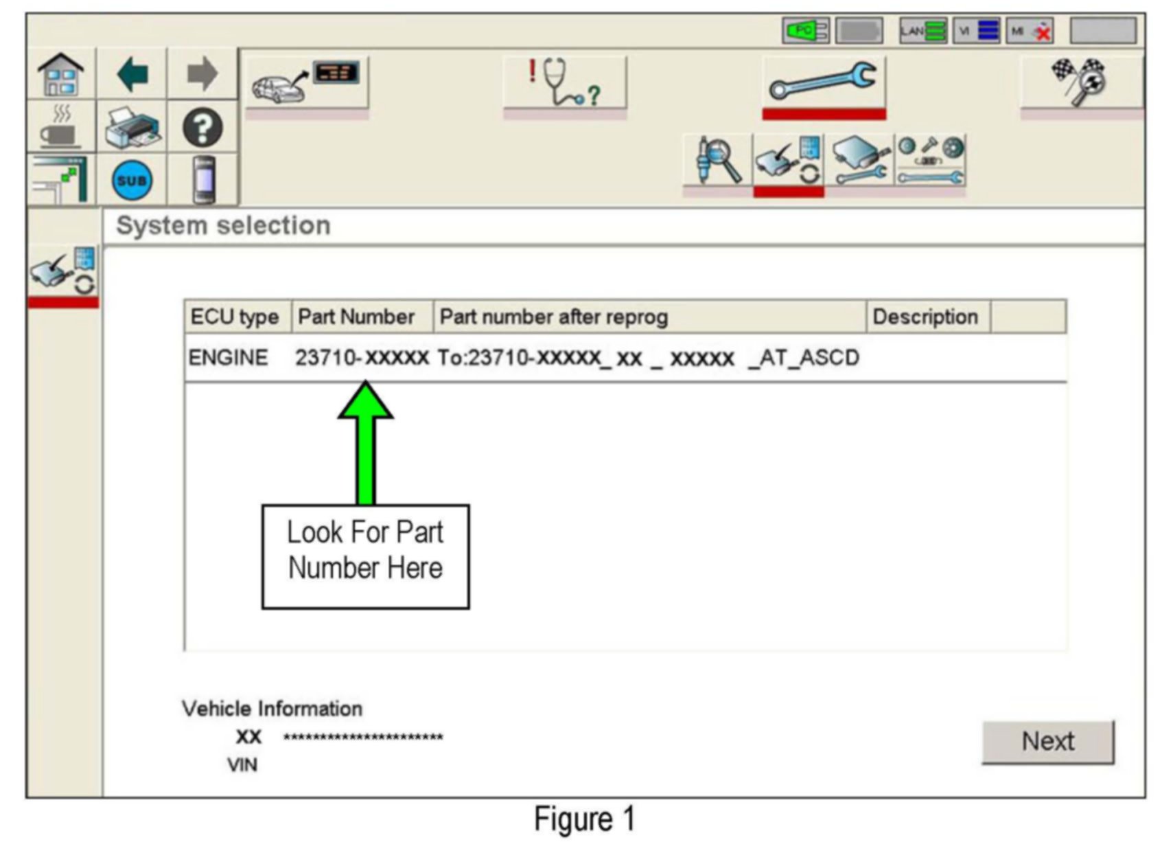 2. When you get to the ECM Reprogramming screen shown in Figure 1 confirm this bulletin applies as follows:
