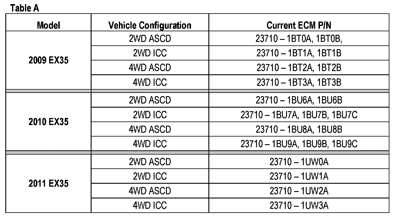 B. Compare the Part Number you wrote down to the numbers in the Current ECM P/N column in Table A above.