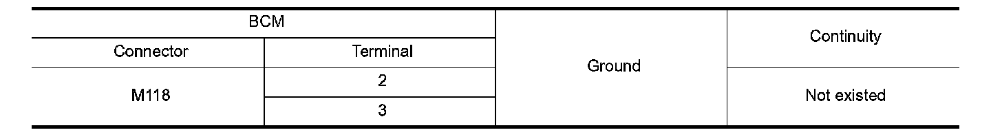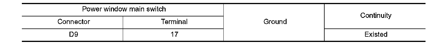 3. Check continuity between BCM harness connector and power window main switch harness connector.
