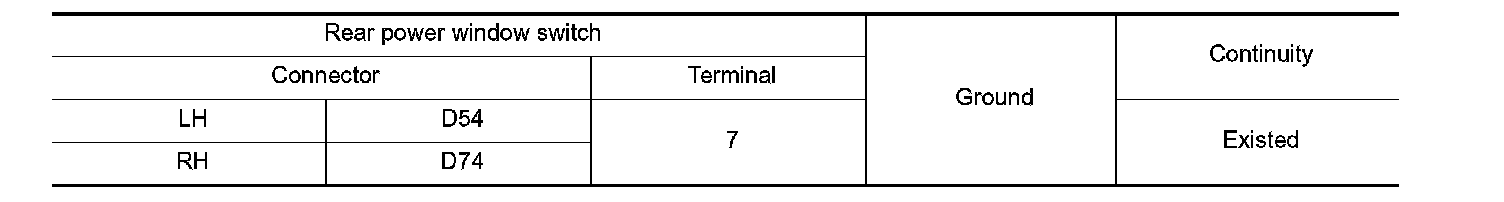 Check continuity between rear power window switch harness connector and ground.