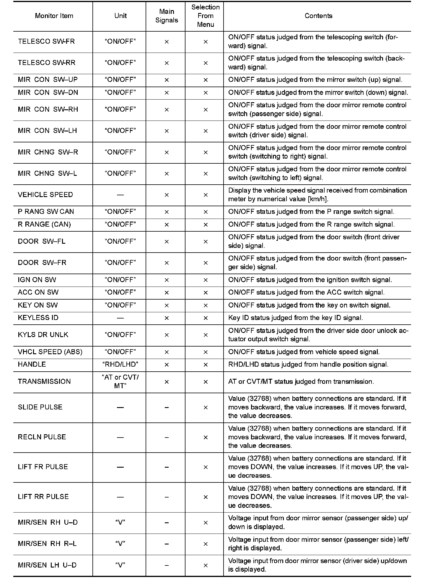 The automatic drive positioner system can be checked and diagnosed for component operation using CONSULT-III.