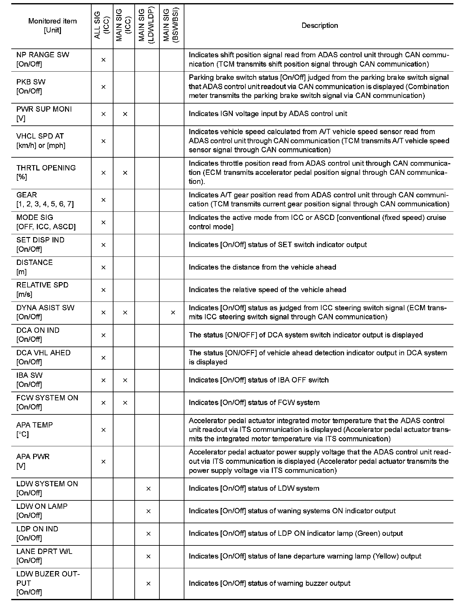DIAGNOSIS SYSTEM (ADAS CONTROL UNIT)