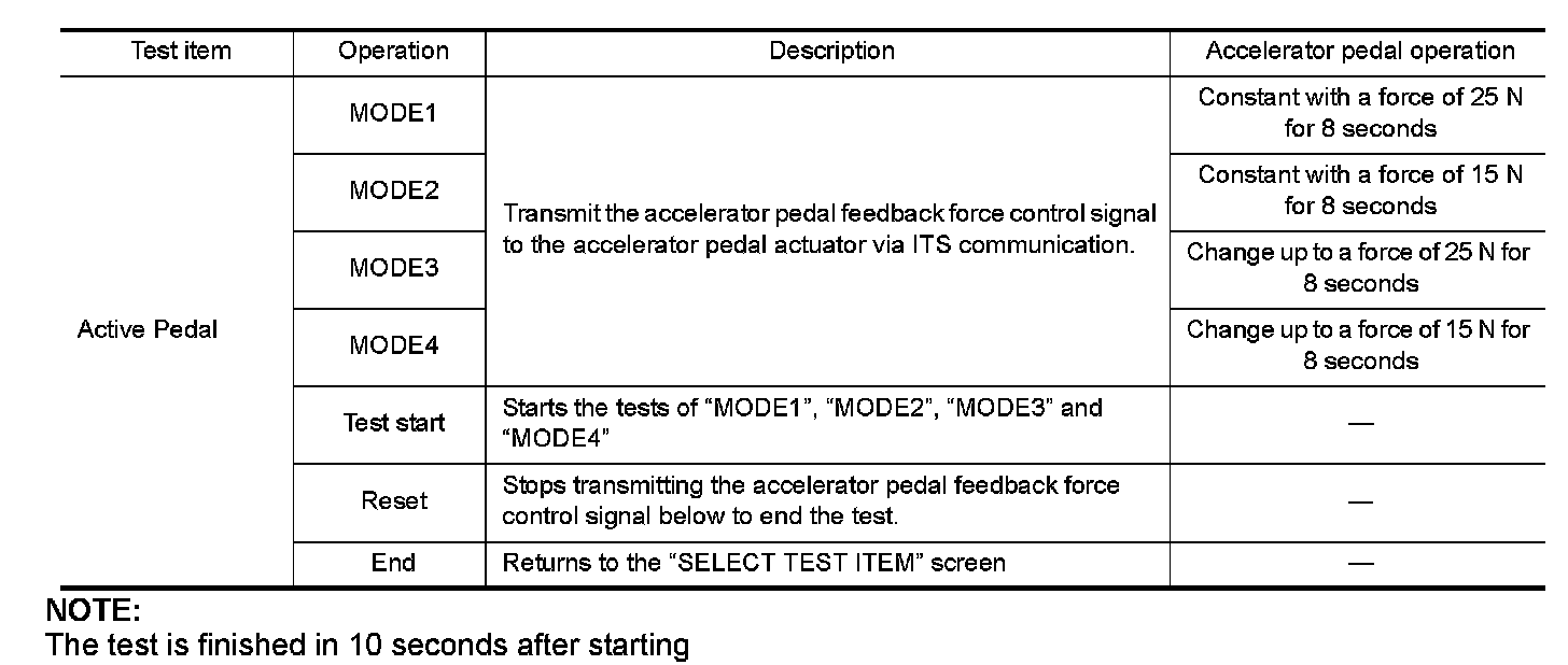 - Depress the accelerator pedal to check when performing the test.