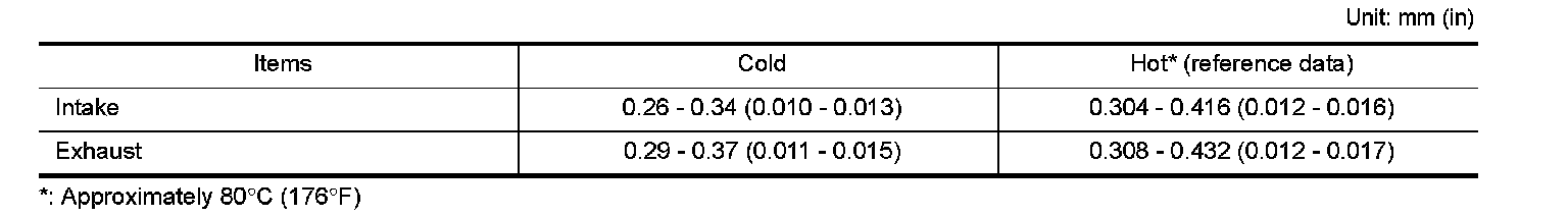 VALVE CLEARANCE