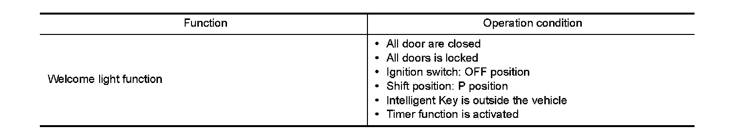 If the following condition are satisfied, welcome light function is operated.