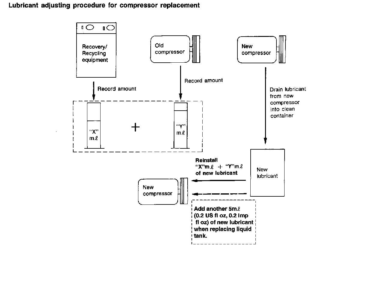 Do not add this 5 m (0.2 US fl oz., 0.2 Imp fl oz.) of lubricant when replacing the compressor only.
