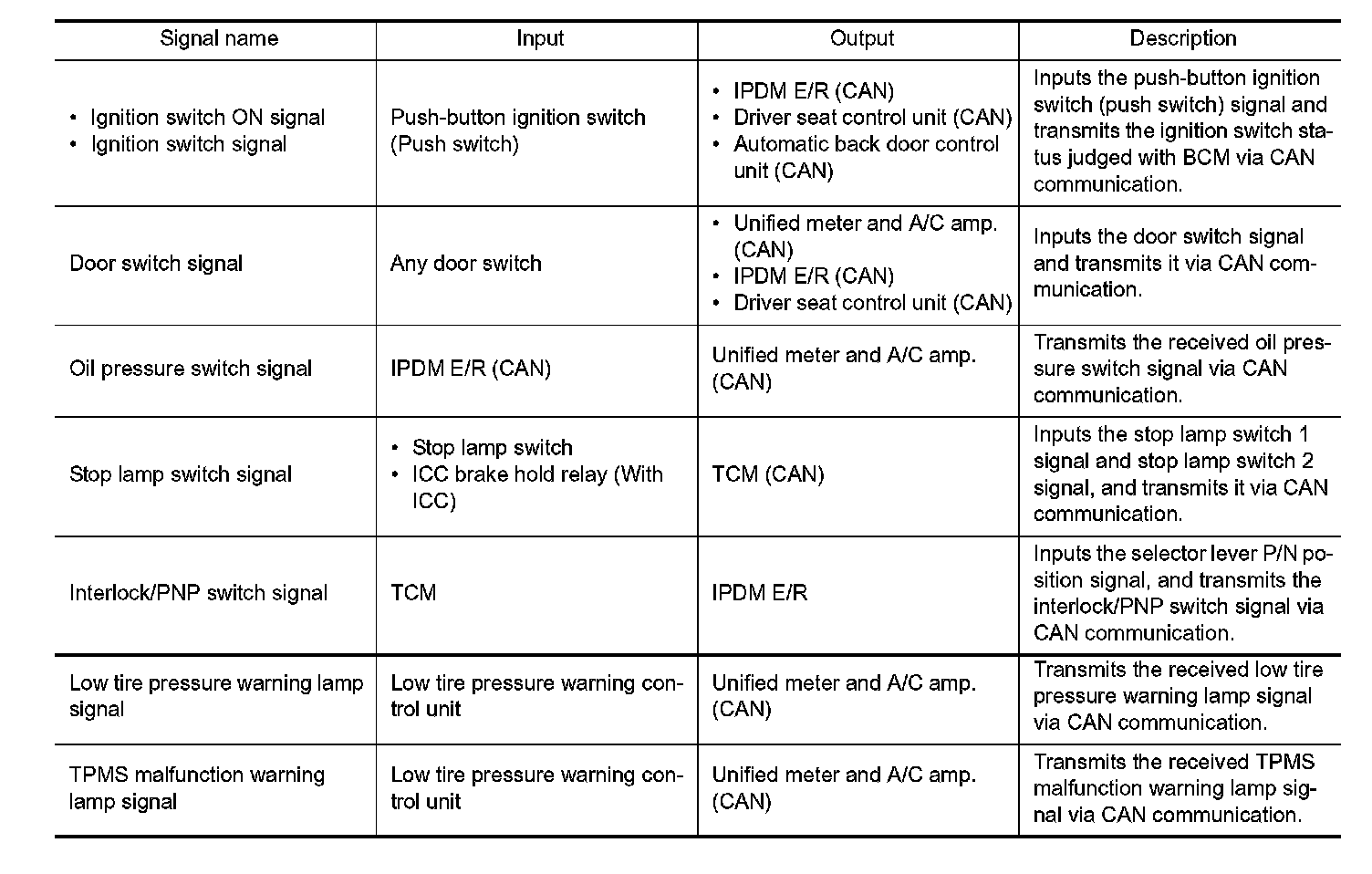 Signal transmission function list