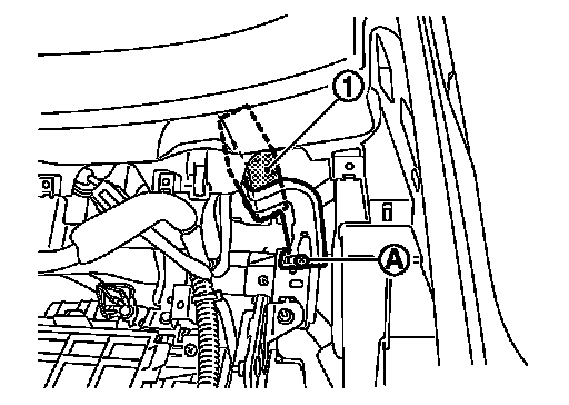 2.Remove the remote keyless entry receiver mounting screw (A), and then remove remote keyless entry receiver (1).
