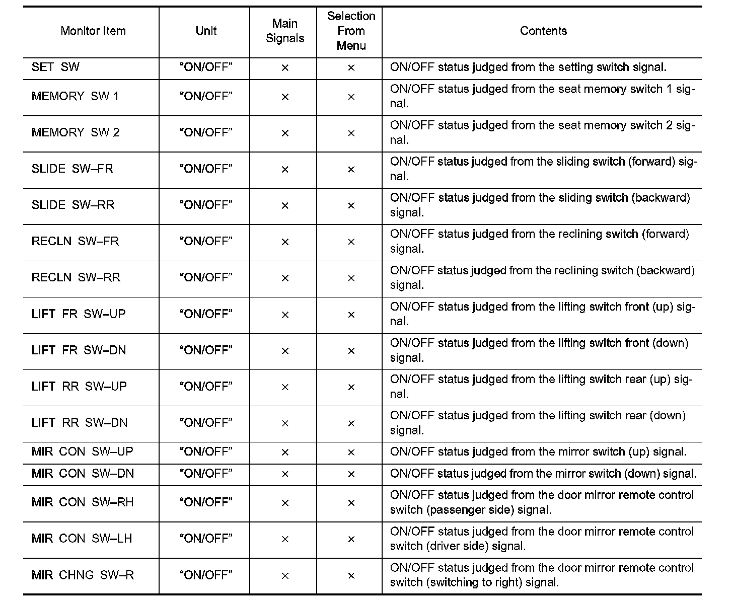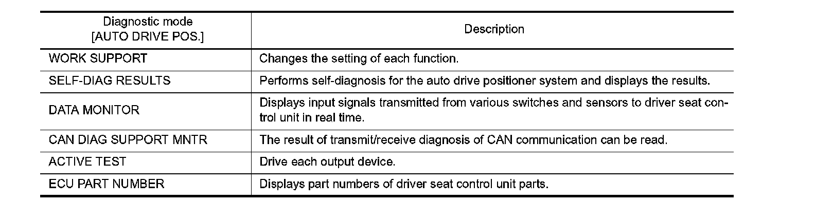 DIAGNOSIS SYSTEM (DRIVER SEAT C/U)