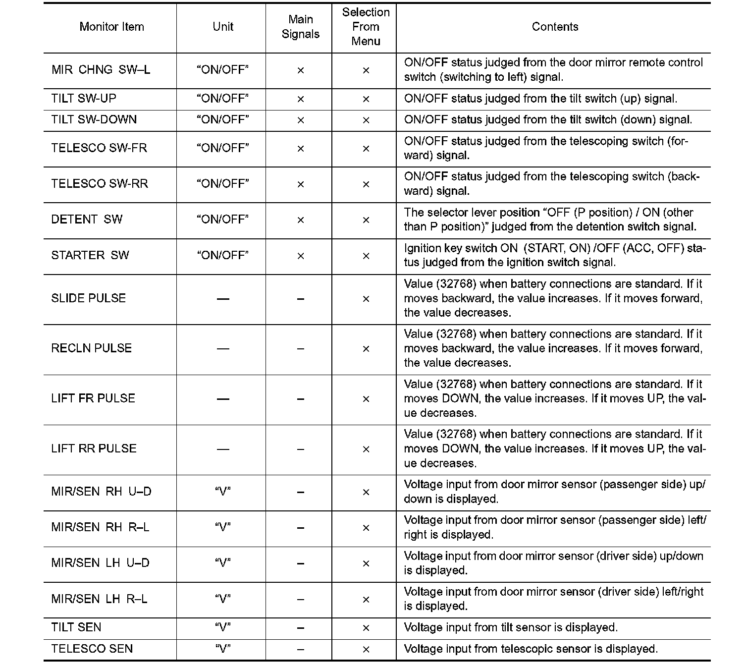 The auto drive positioner system can be checked and diagnosed for component operation with CONSULT.