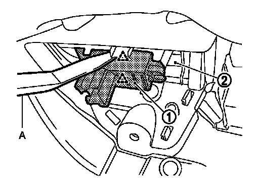 2.Rear power window switch (1) is removed from rear power window switch finisher (2) using remover tool (A).