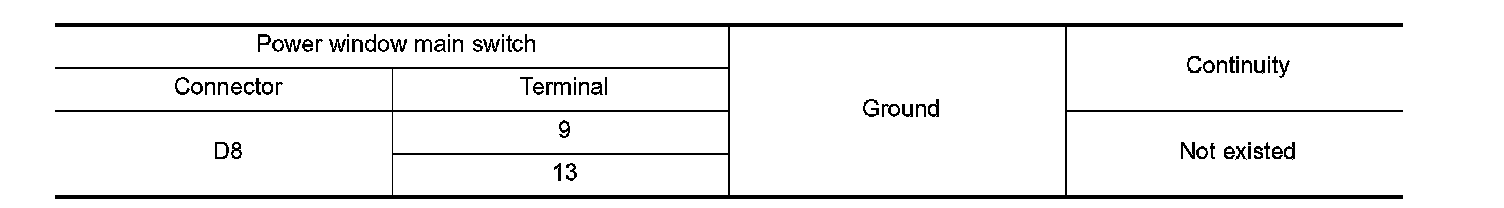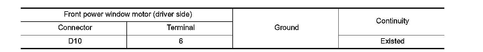 2.Check continuity between front power window motor (driver side) harness connector and ground.