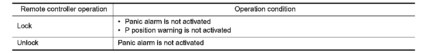 If the following condition are satisfied, remote keyless entry operation is performed when the Intelligent Key is operated.