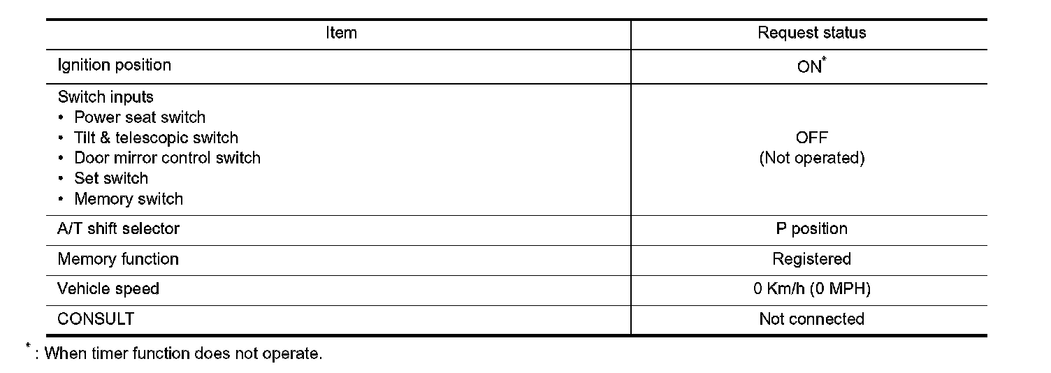 - Satisfy all of the following items. The timer function is not performed if these items are not satisfied.