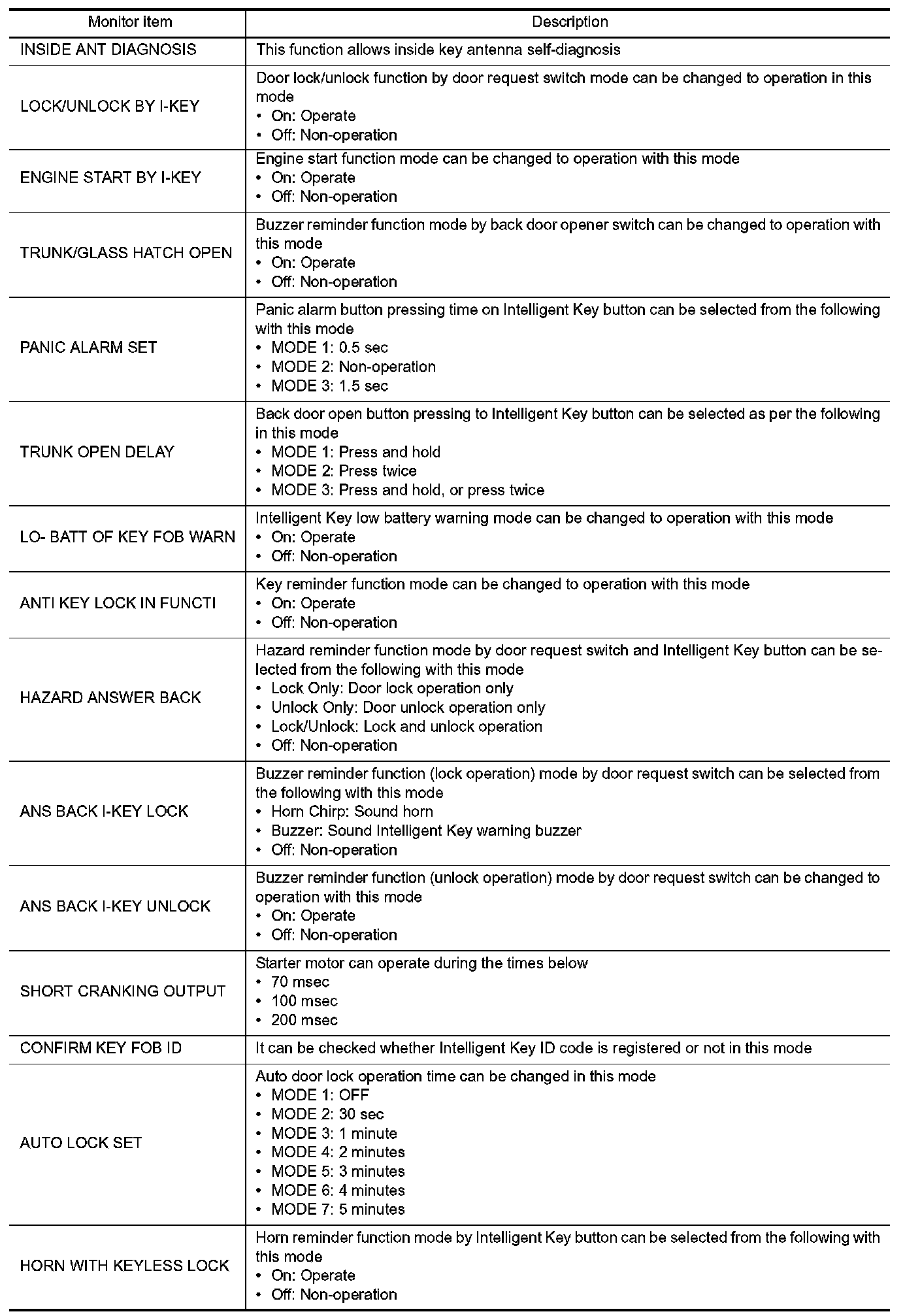 INTELLIGENT KEY : CONSULT Function (
