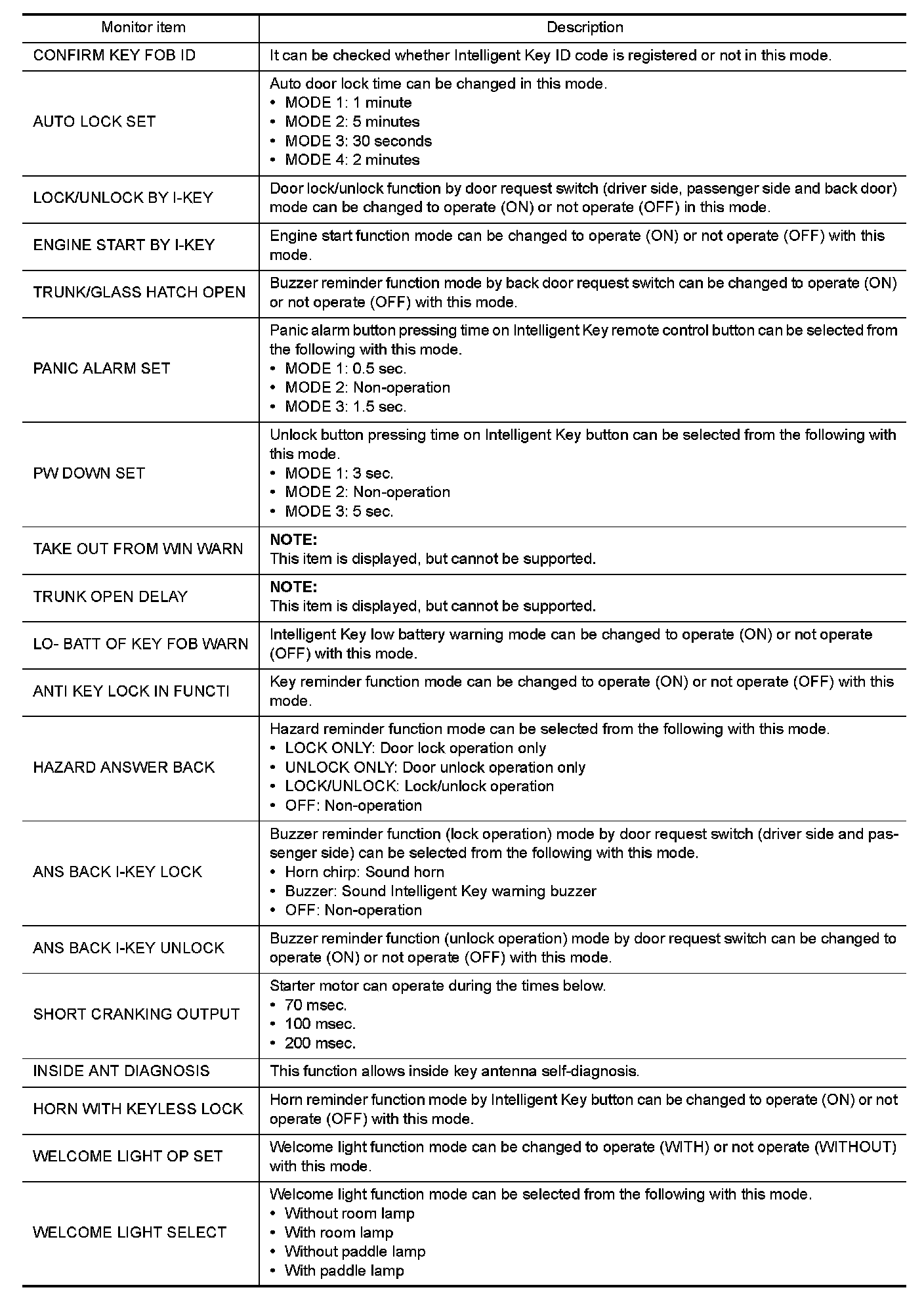 INTELLIGENT KEY : CONSULT Function (BCM - INTELLIGENT KEY)