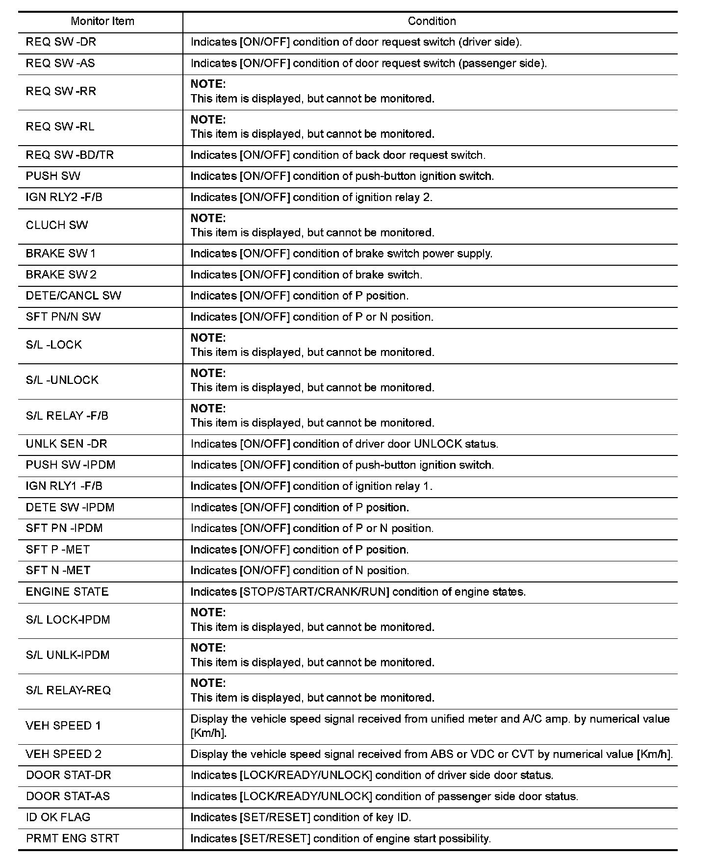 The following table includes information (items) inapplicable to this vehicle. For information (items) applicable to this vehicle, refer to CONSULT display items.
