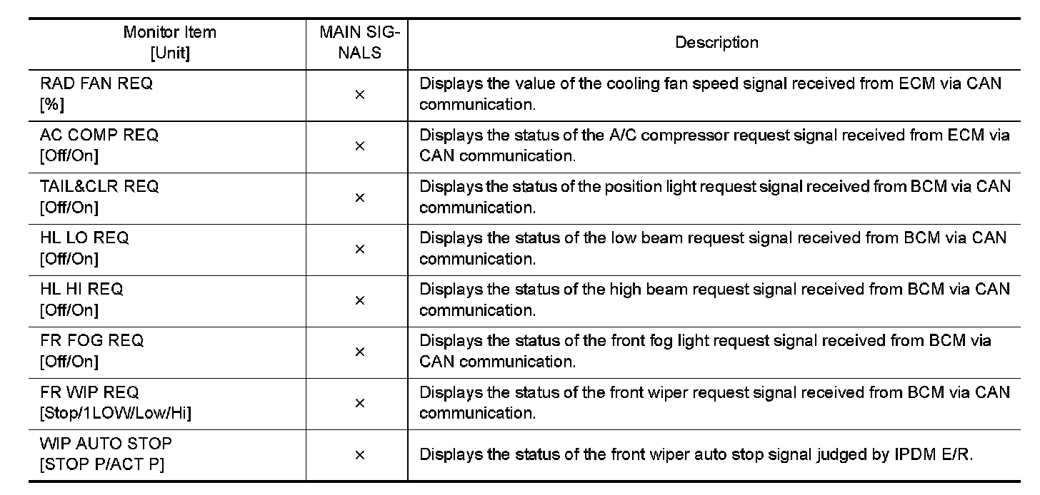 CONSULT performs the following functions via CAN communication with IPDM E/R.