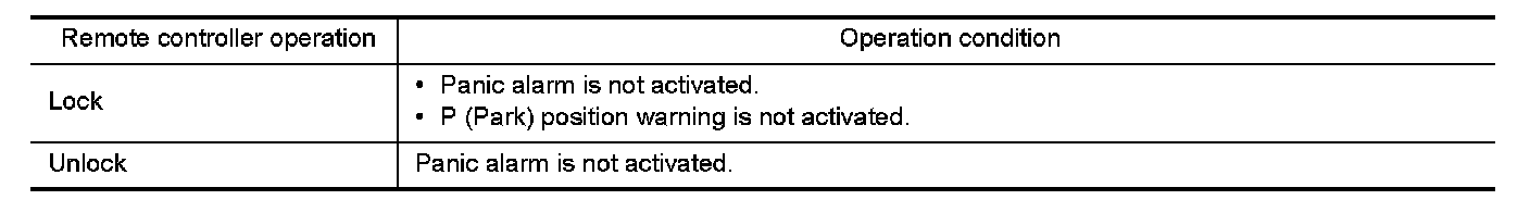 If the following condition are satisfied, remote keyless entry operation is performed when the Intelligent Key is operated.