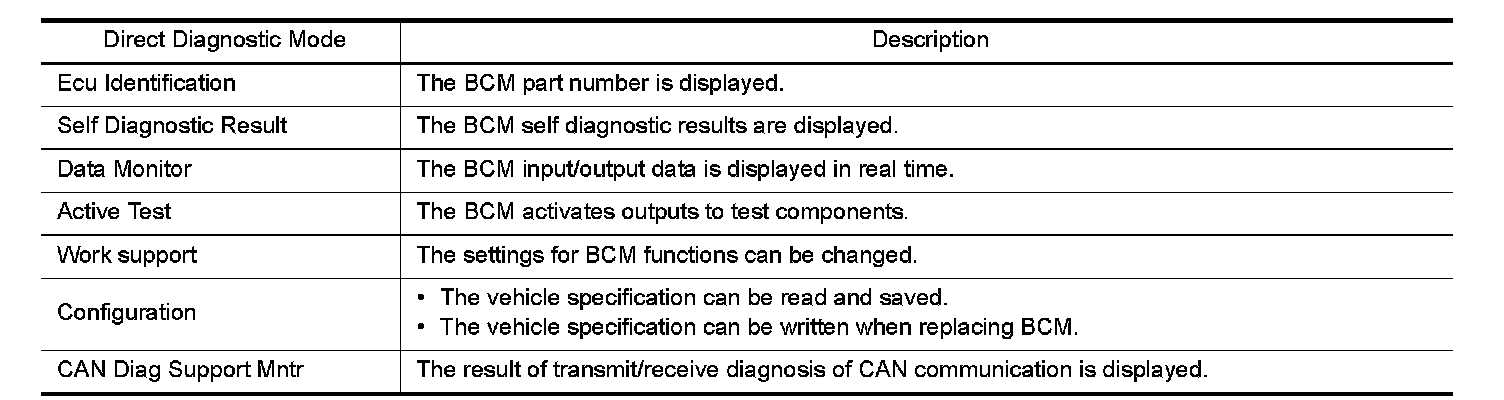 CONSULT performs the following functions via CAN communication with BCM.