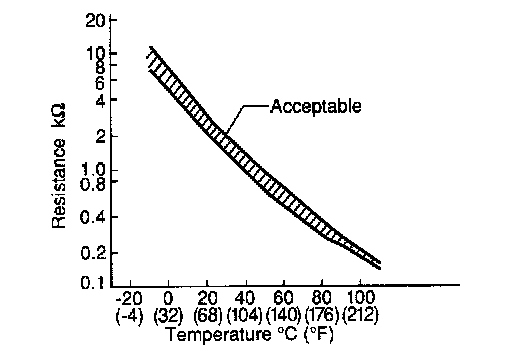 The modified signal returns to the ECM as the engine oil temperature input. The sensor uses a thermistor which is sensitive to the change in temperature. The electrical resistance of the thermistor decreases as temperature increases.