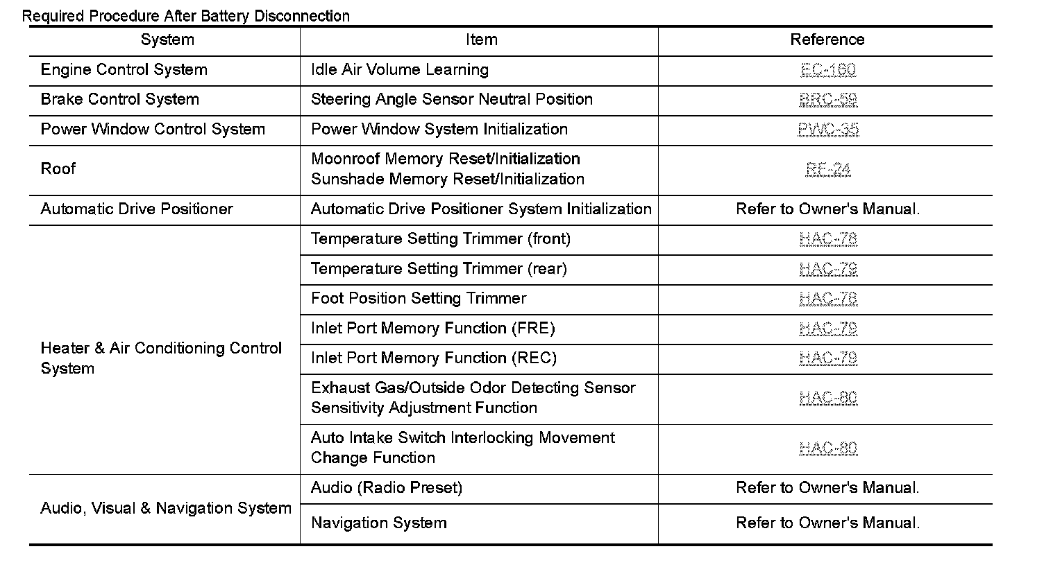 Required Procedure After Battery Disconnection