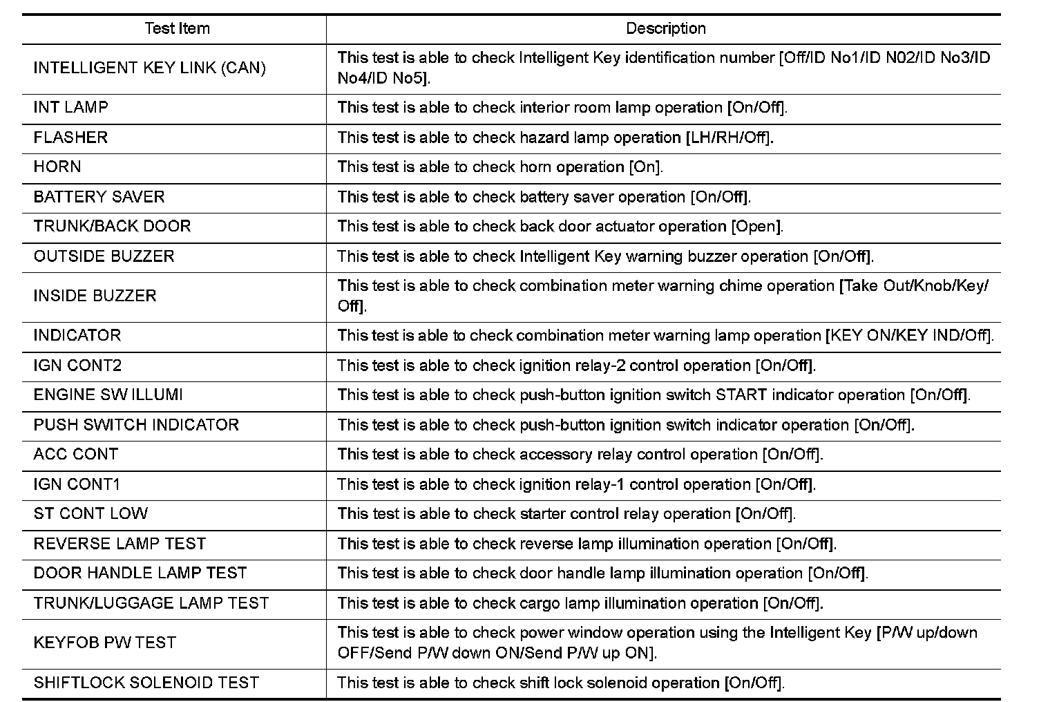 Consult Function (BCM - Intelligent Key)