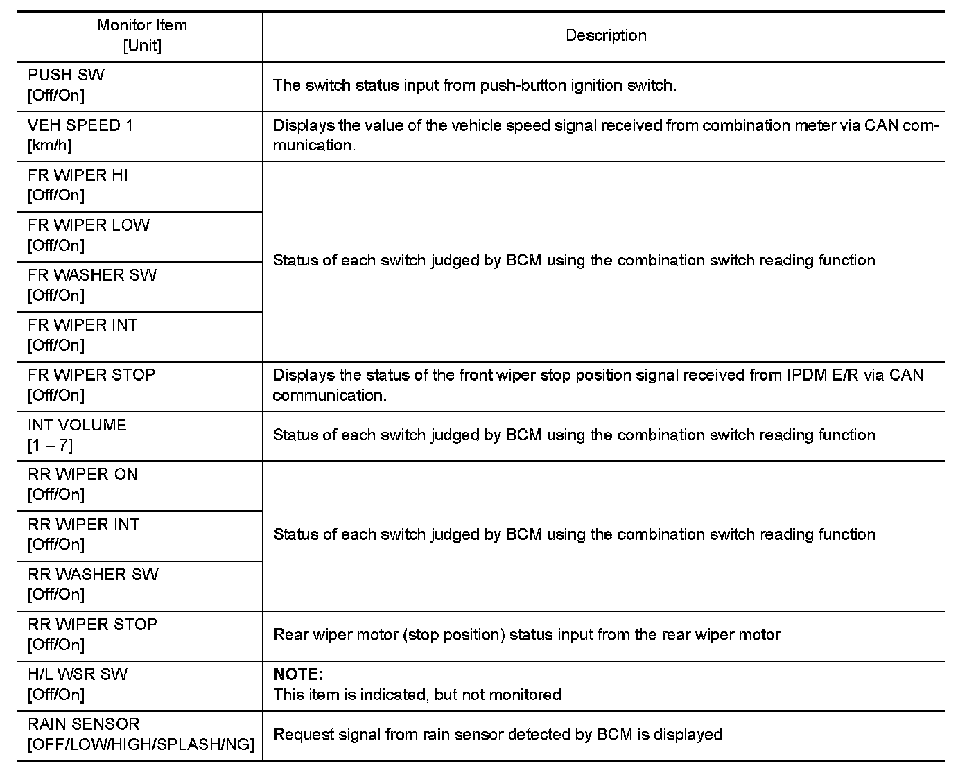 The following table includes information (items) inapplicable to this vehicle. For information (items) applicable to this vehicle, refer to CONSULT display items.