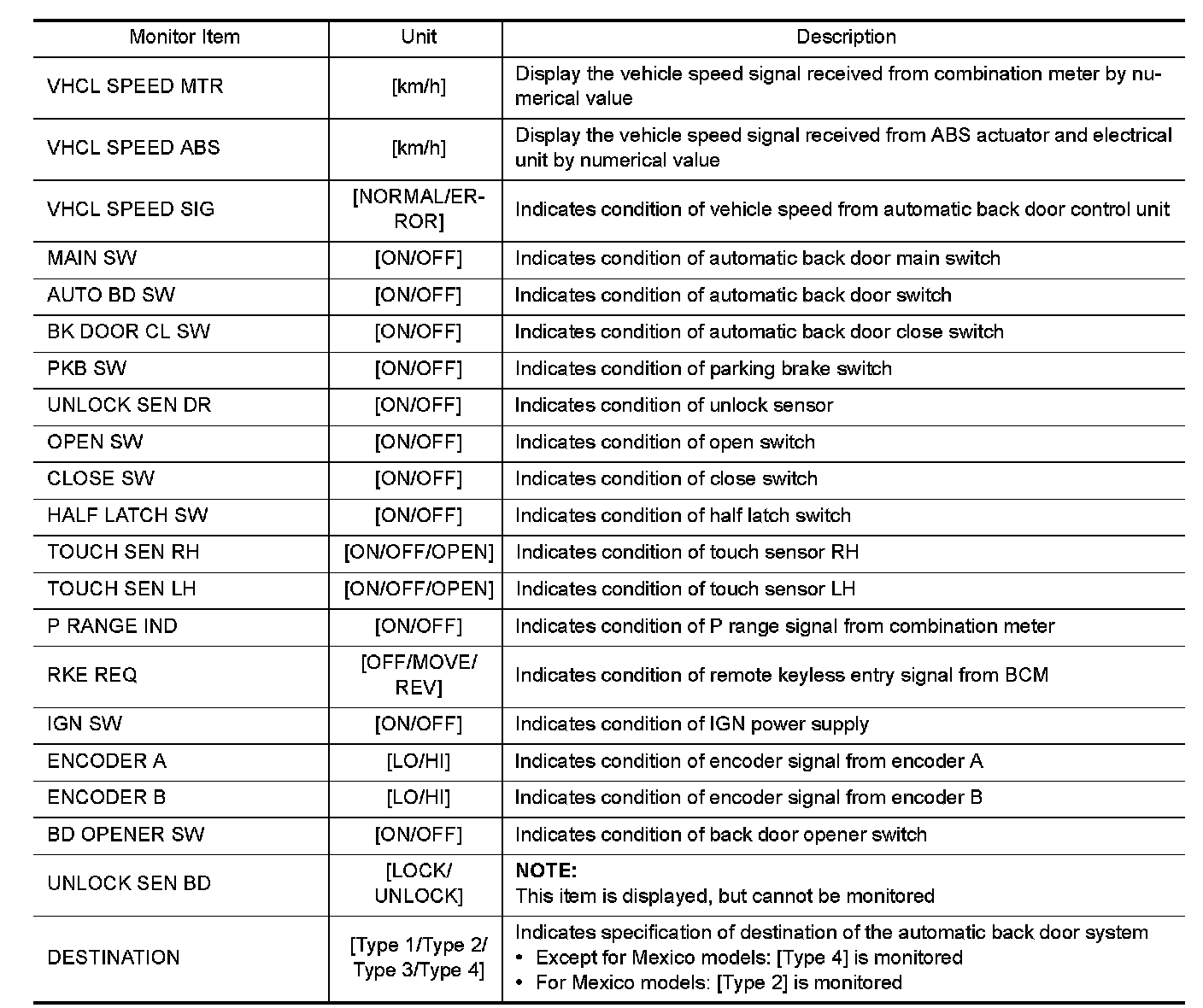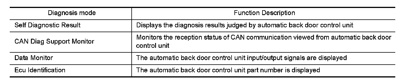 DIAGNOSIS SYSTEM (AUTOMATIC BACK DOOR CONTROL UNIT)