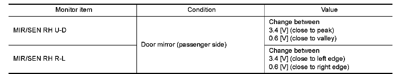 2.Check the mirror sensor (passenger side) signal under the following conditions.