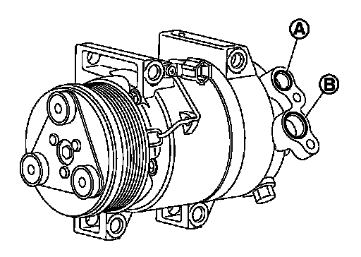 1.Drain lubricant from high-pressure port (A) and low-pressure port (B) while rotating magnet clutch.