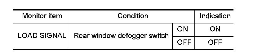 3.Select "LOAD SIGNAL" and check indication under the following conditions.