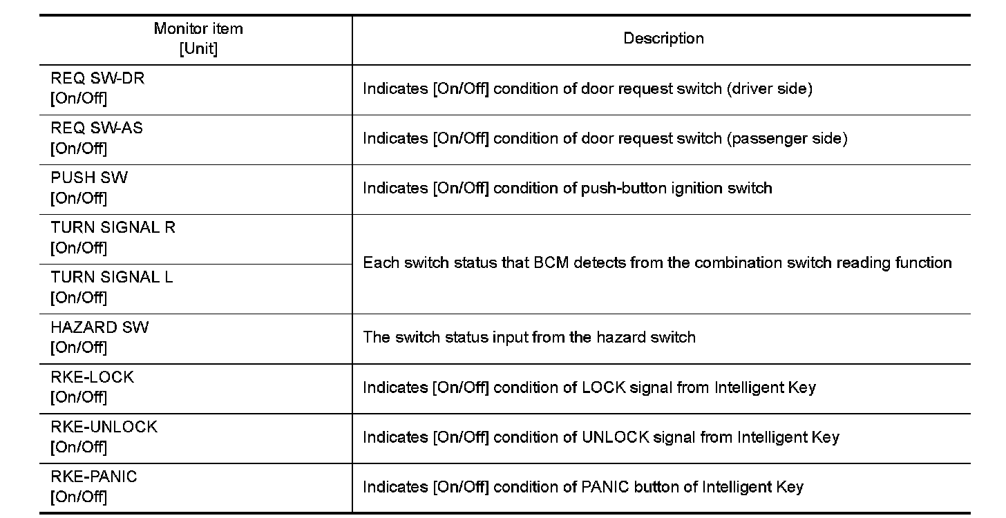 The following table includes information (items) inapplicable to this vehicle. For information (items) applicable to this vehicle, refer to CONSULT display items.
