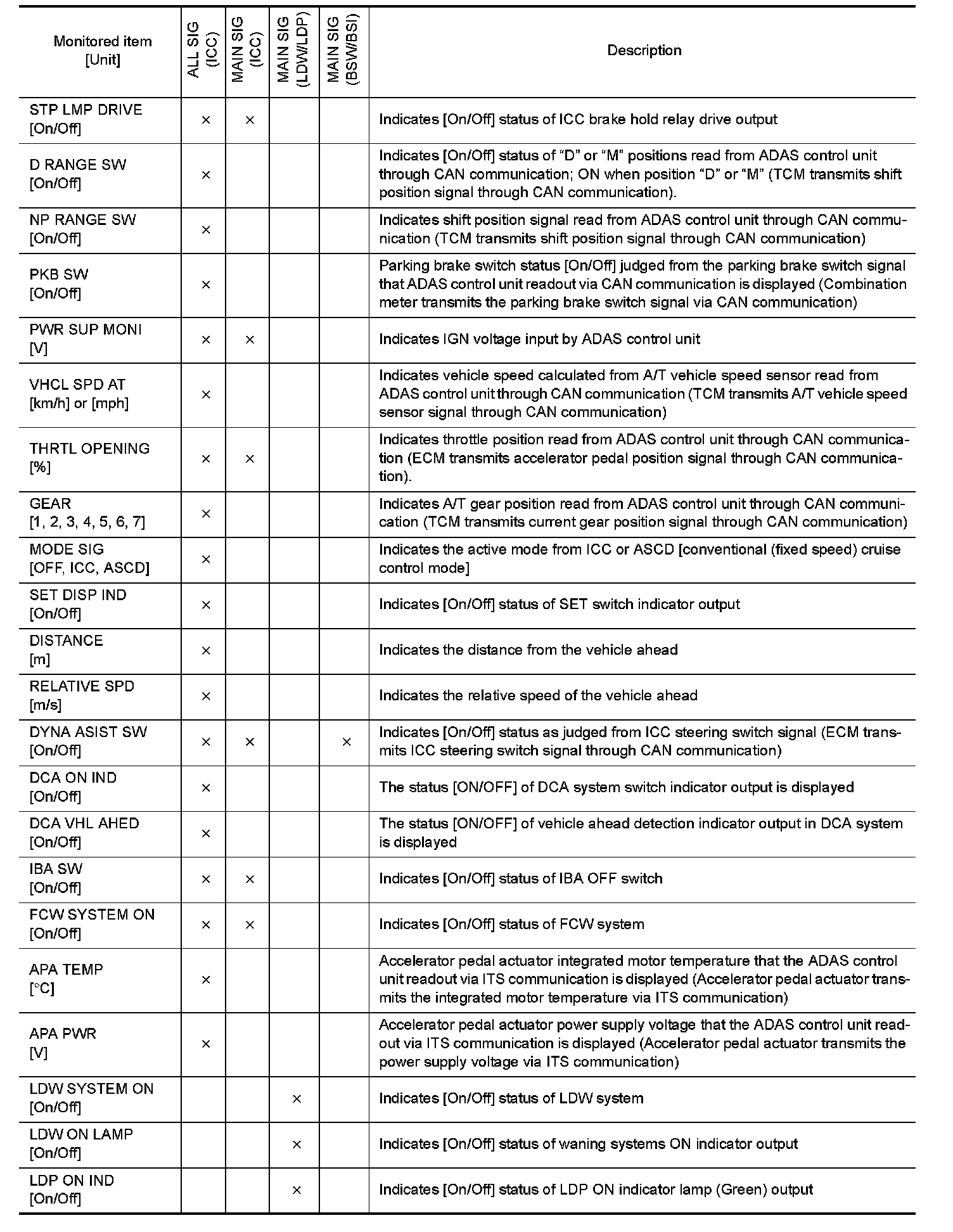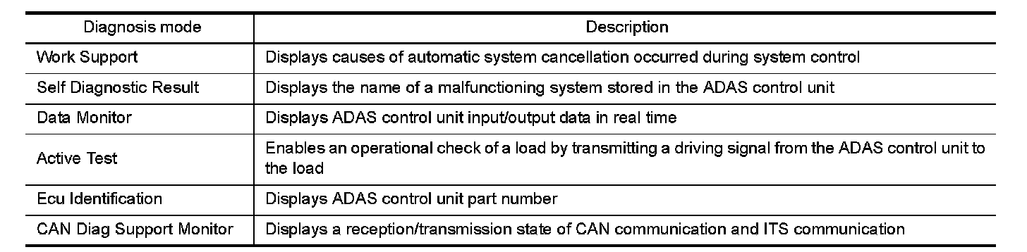 DIAGNOSIS SYSTEM (ADAS CONTROL UNIT)
