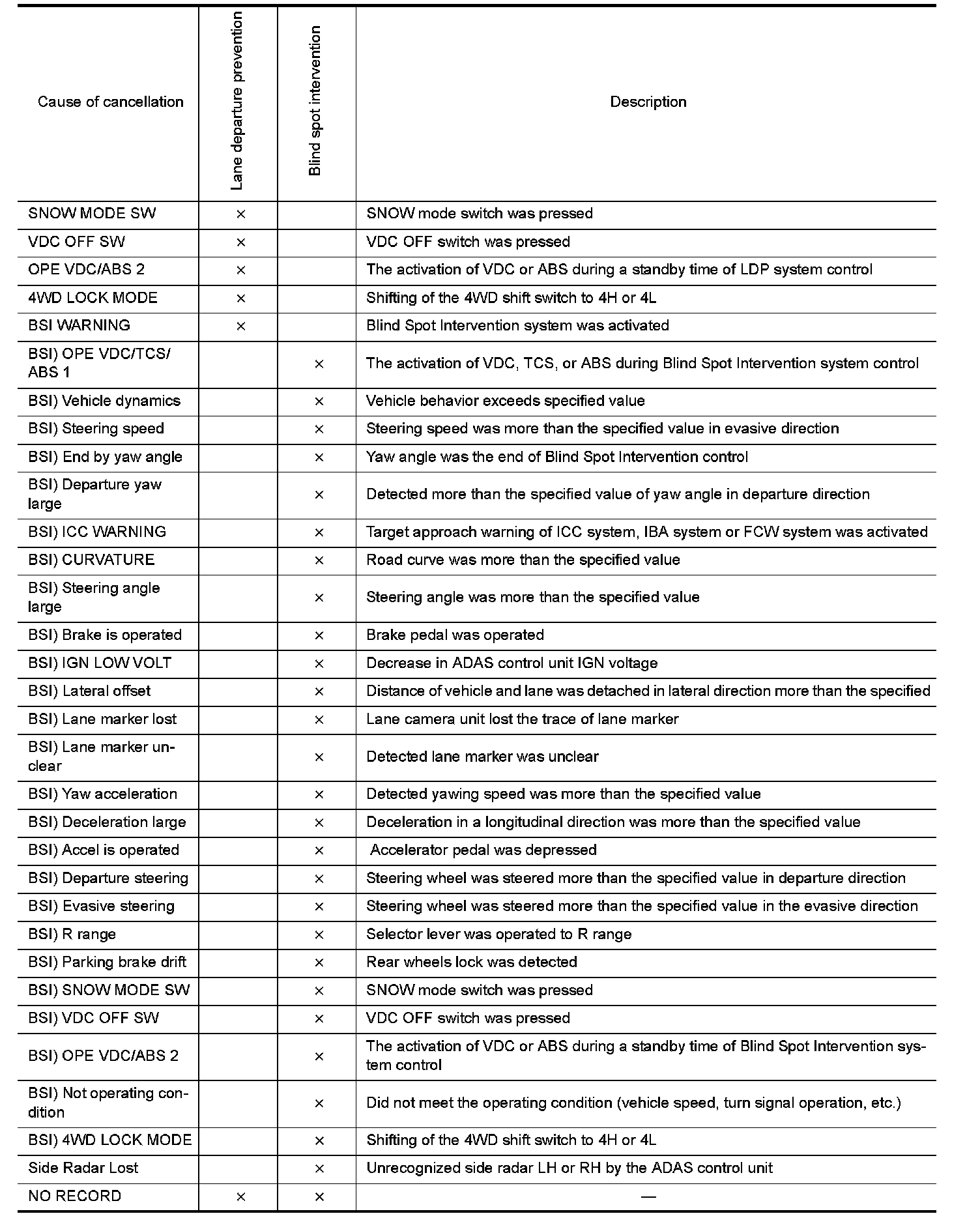 - Blind Spot Warning/Blind Spot Intervention warning lamp