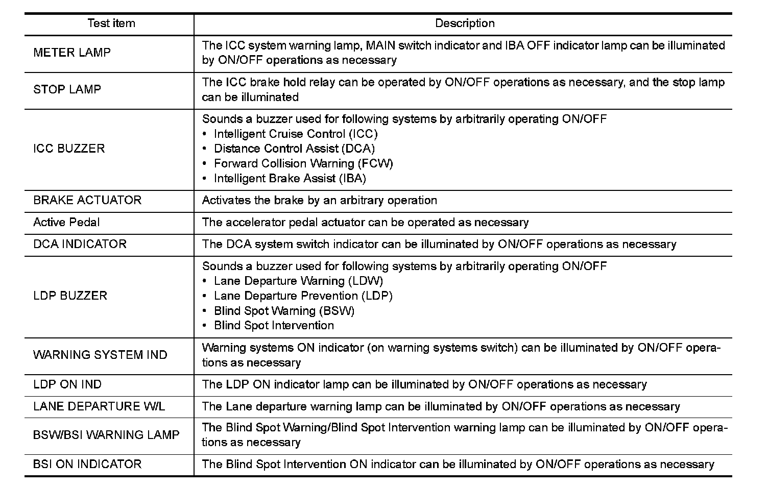 - The "Active Test" cannot be performed when the following systems warning lamp is illuminated.