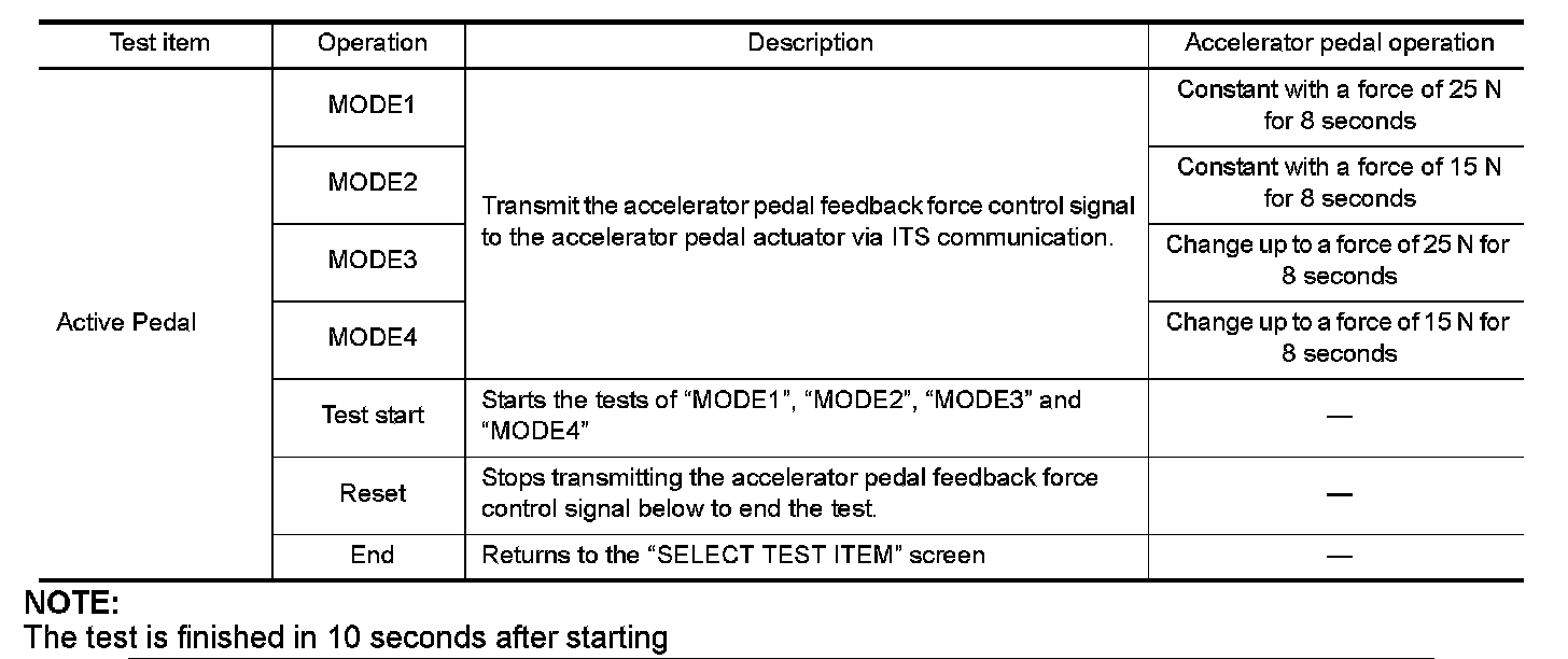 - Depress the accelerator pedal to check when performing the test.